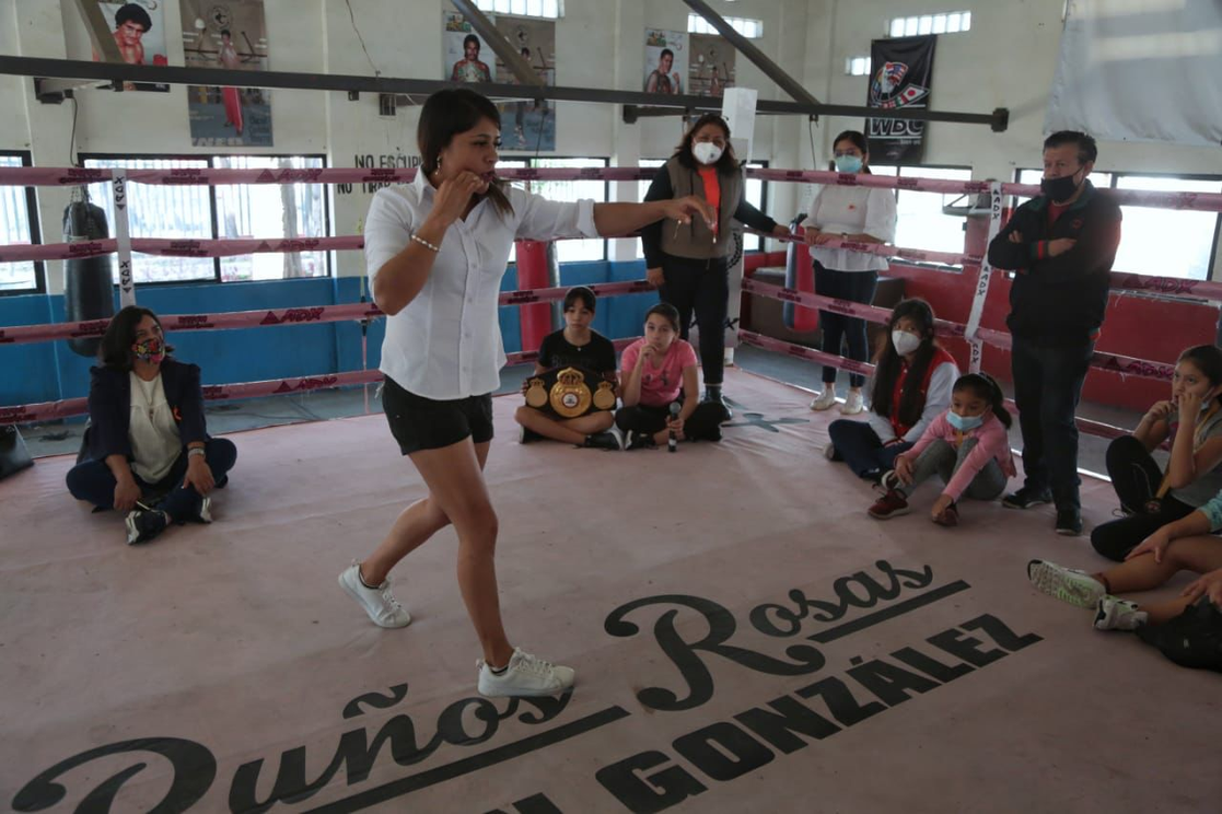 “Creo que las mujeres hemos demostrado que sí se puede y aquí estoy rodeada de muchas niñas. Las mujeres también podemos ocupar puestos importantes. Yo creo que todas ustedes si se lo proponen y lo trabajan lo pueden lograr”, les dijo la campeona a las niñas aficionadas al box, que pudieron entrenar y recibir consejos de Dinamita.