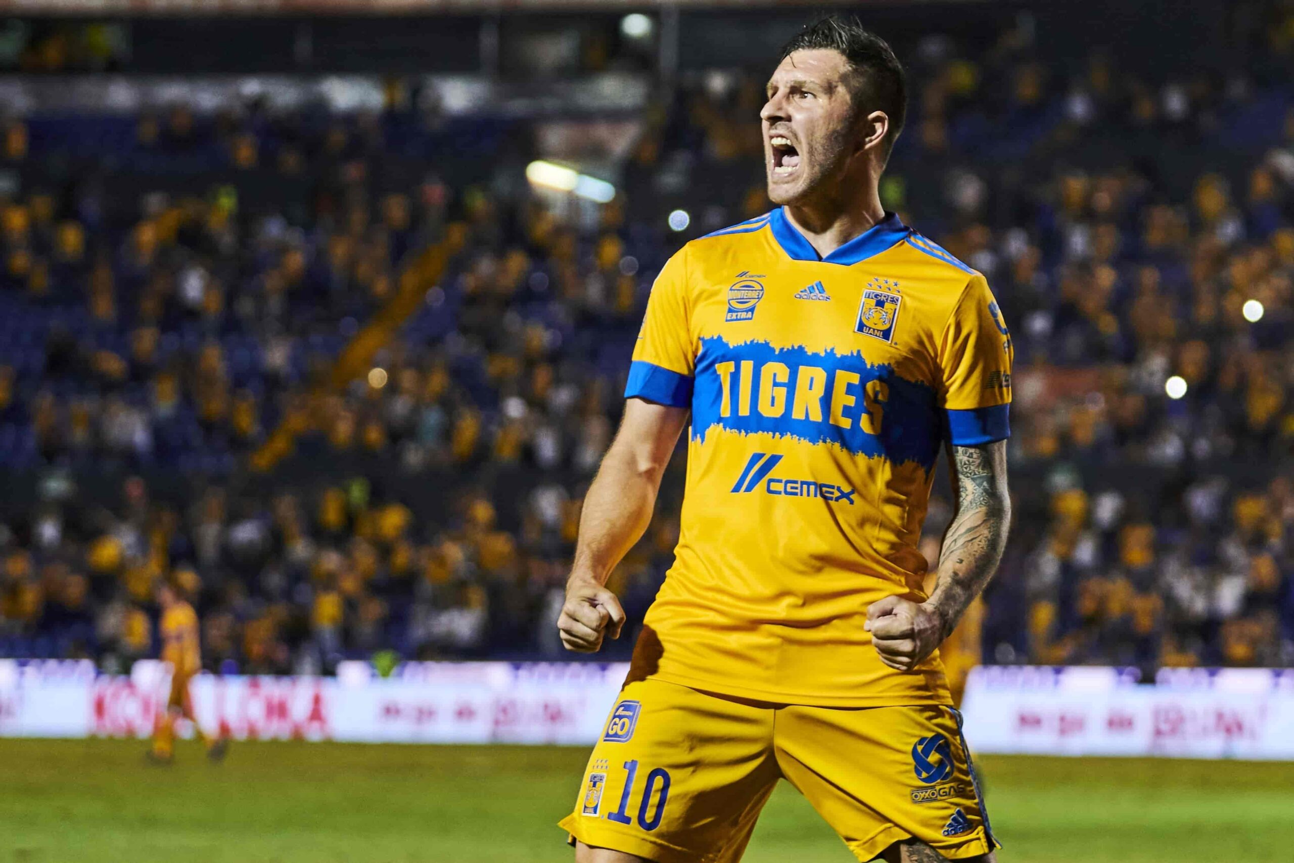 Andre-Pierre Gignac celebrates his goal 2-1 of Tigres during the game Tigres UANL vs Monterrey, corresponding to the 16th round match of the Torneo Guard1anes Clausura 2021 of the Liga BBVA MX, at Universitario Stadium, on April 24, 2021.