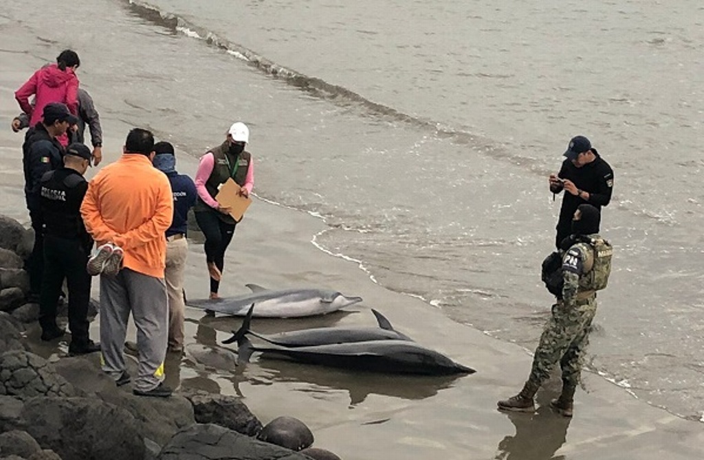 Al menos 7 delfines encallaron en playas de Boca del Río, la gente los ayudó a regresar al mar, pero 3 no lo lograron y murieron, señaló el director de Protección Civil, Andrés Escalera.