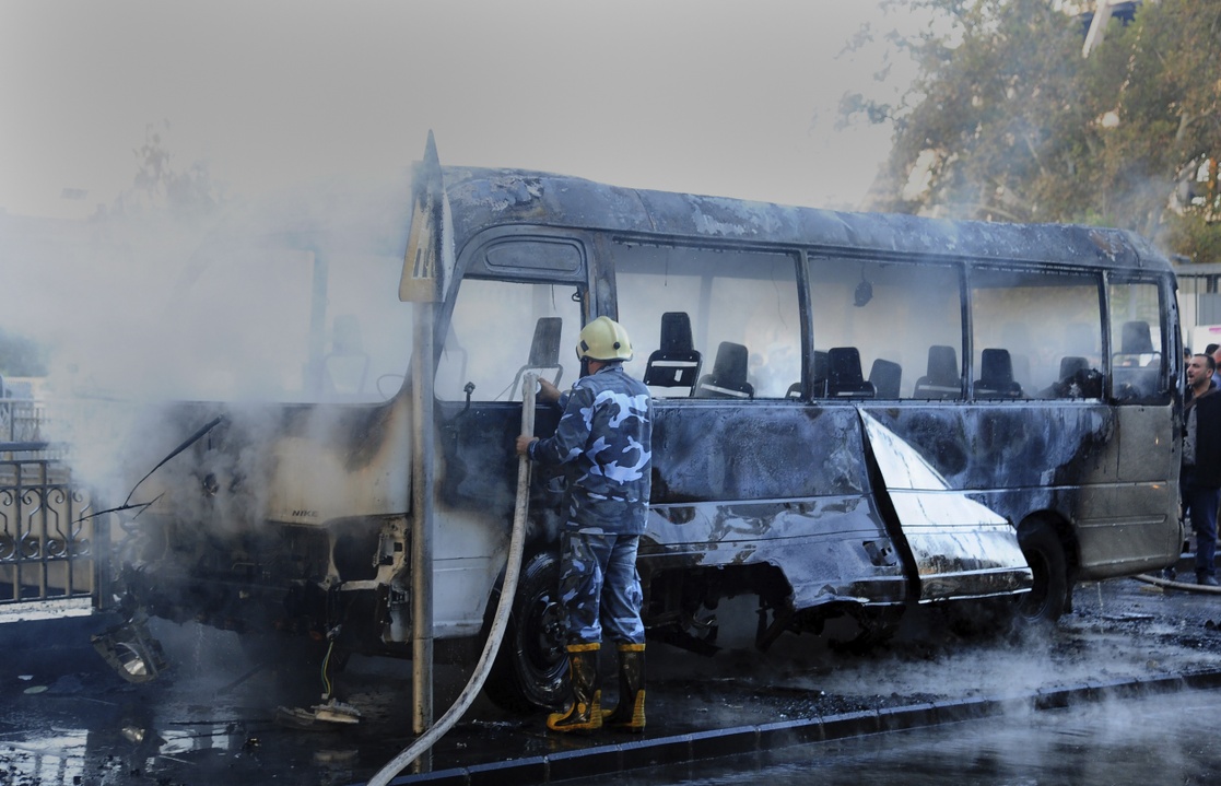 Damasco. Un atentado contra un autobús militar en Damasco y un bombardeo poco después contra una ciudad del noroeste de Siria controlada por los rebeldes se saldaron con al menos 27 muertos este miércoles.