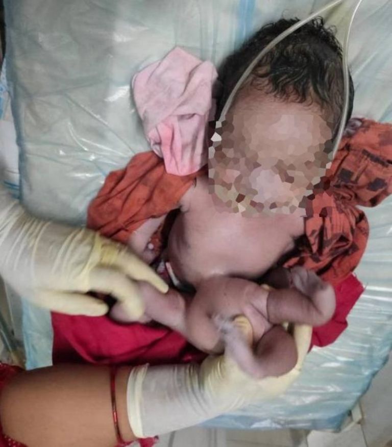 Los especialistas verificaron las condiciones de la madre y el pequeño, sostuvieron que el bebé nació con un mayor número de brazos y piernas porque sería el cuerpo de un gemelo que no alcanzó a desarrollarse adecuadamente.