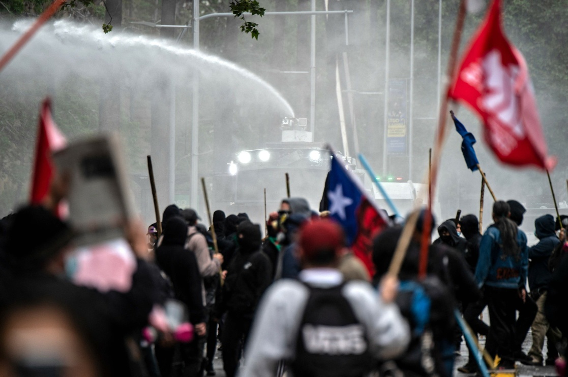 La protesta dejó además 17 carabineros (policías) lesionados de diversa consideración, 9 detenidos por desórdenes y 1 por porte de arma a fogueo, según la Policía.