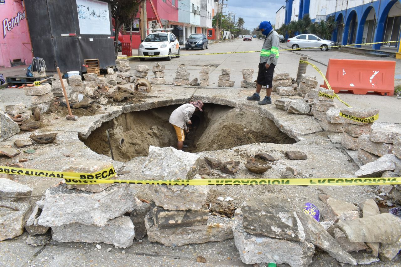 Atienden socavón en colonia Playa Sol