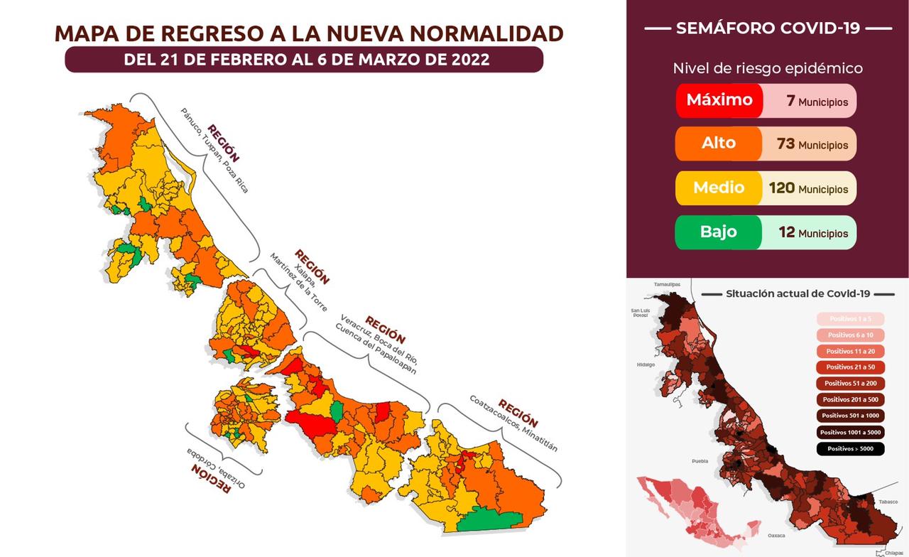 Ante la baja en los casos positivos de Covid-19 Coatzacoalcos pasará a color amarillo del semáforo epidemiológico del 21 de febrero al 6 de marzo de acuerdo a la clasificación de riesgo por municipios en el informe de la Secretaría de Salud de Veracruz.