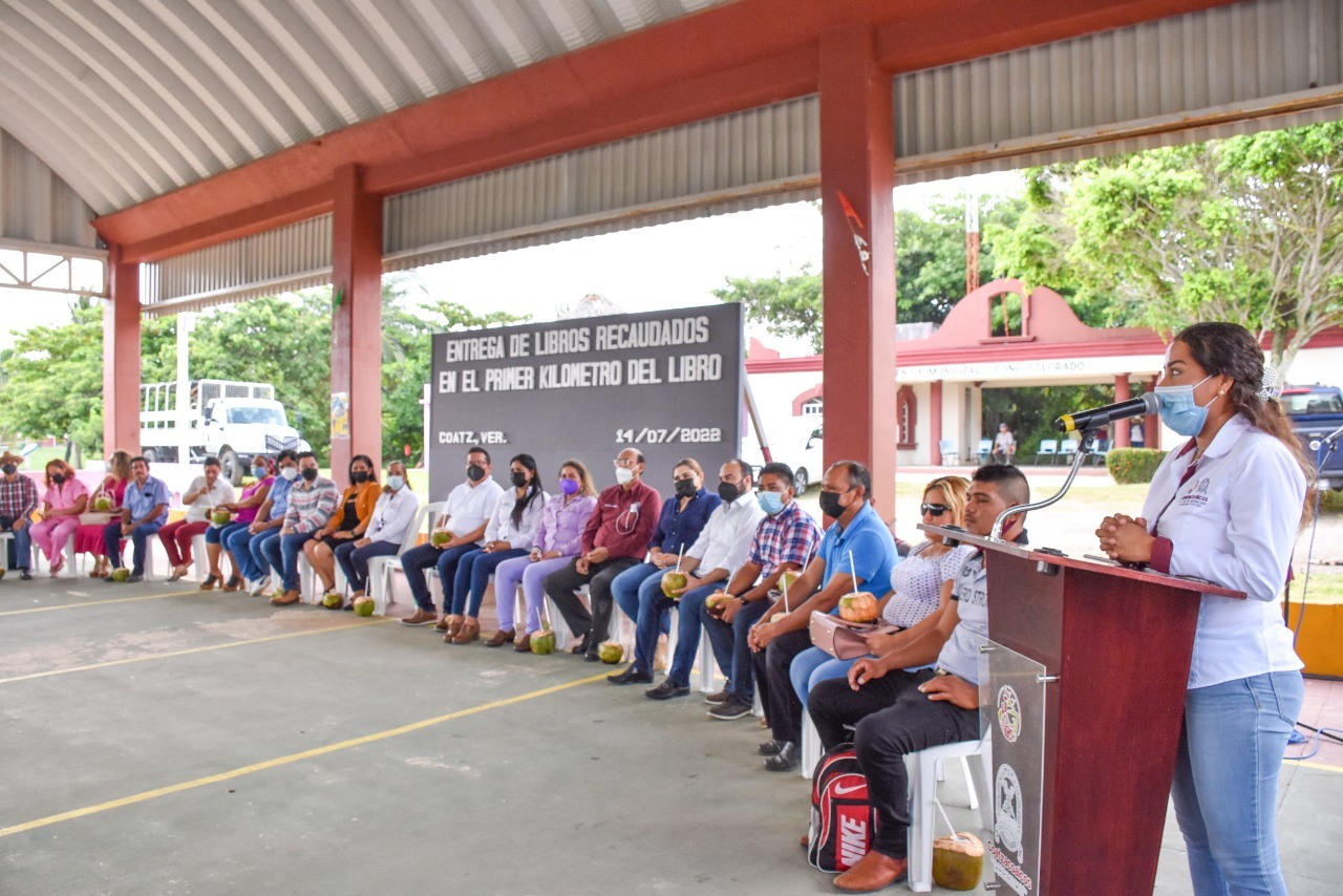 Coatzacoalcos, Ver.-Gracias al apoyo de la ciudadanía, más de tres mil libros que donaron en el “Primer Kilómetro del Libro”, evento convocado por el Gobierno Municipal, fueron entregados a escuelas de los 12 ejidos y congregaciones de Coatzacoalcos, impulsando la lectura entre miles de alumnos de estas demarcaciones.