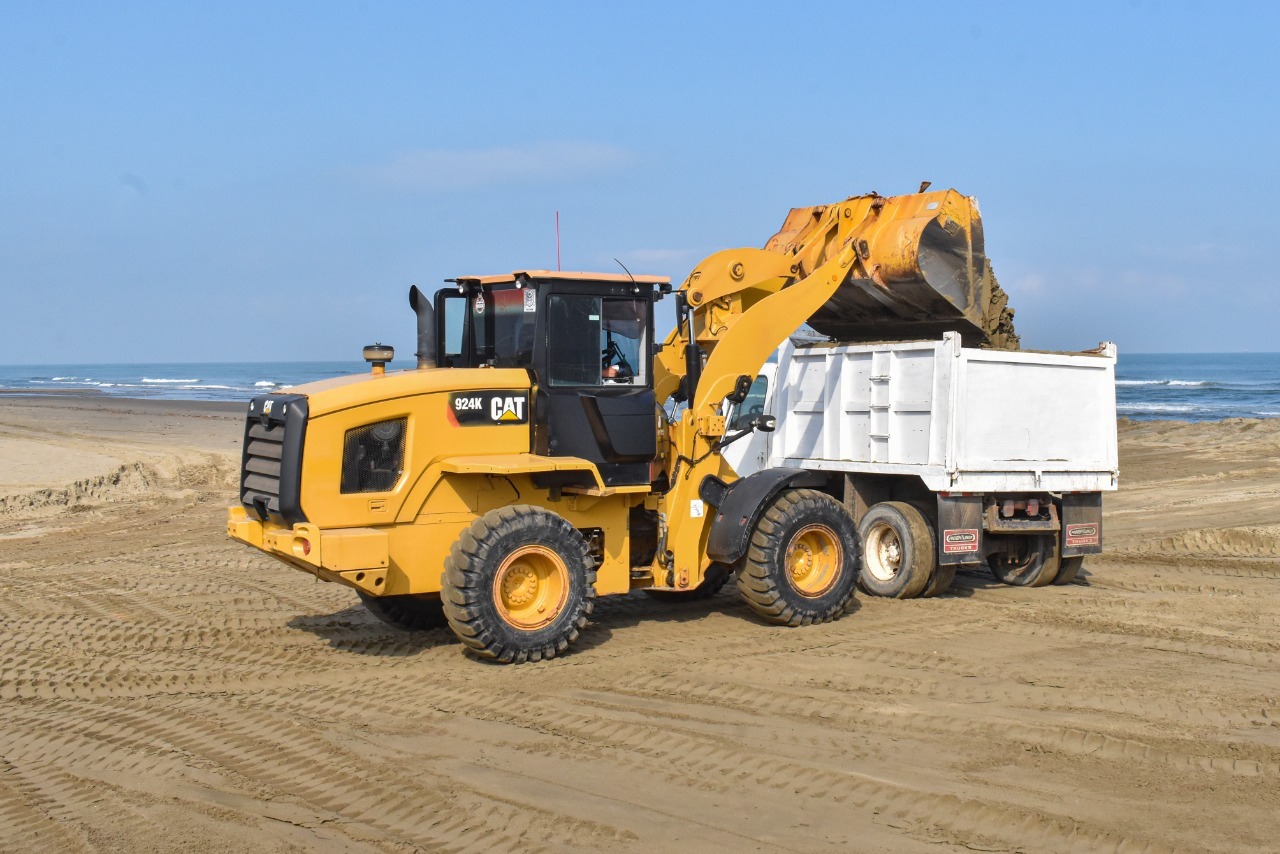 Con el apoyo de retroexcavadoras, motoconformadoras, pala cargadora (payloader), bobcat y volteos, la arena recolectada fue devuelta al mar para impedir que con los fuertes vientos se concentre en el arroyo vehicular y que le siga ganando terreno a la playa.