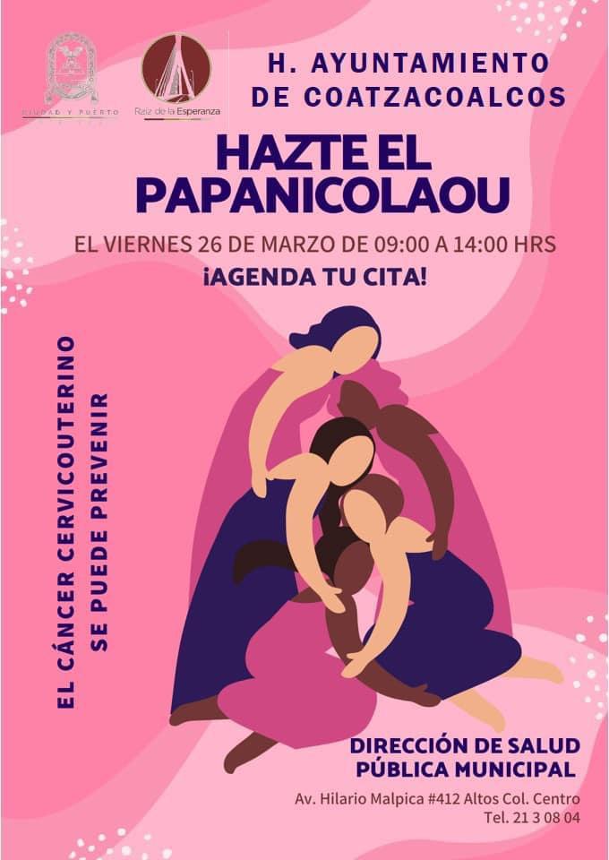 Coatzacalcos, Ver.- Cuidando la salud sexual de las mujeres, dentro de este mes dedicado a las féminas, la Dirección de Salud Pública Municipal llevará a cabo el próximo 26 de marzo una Jornada de Papanicolaou.