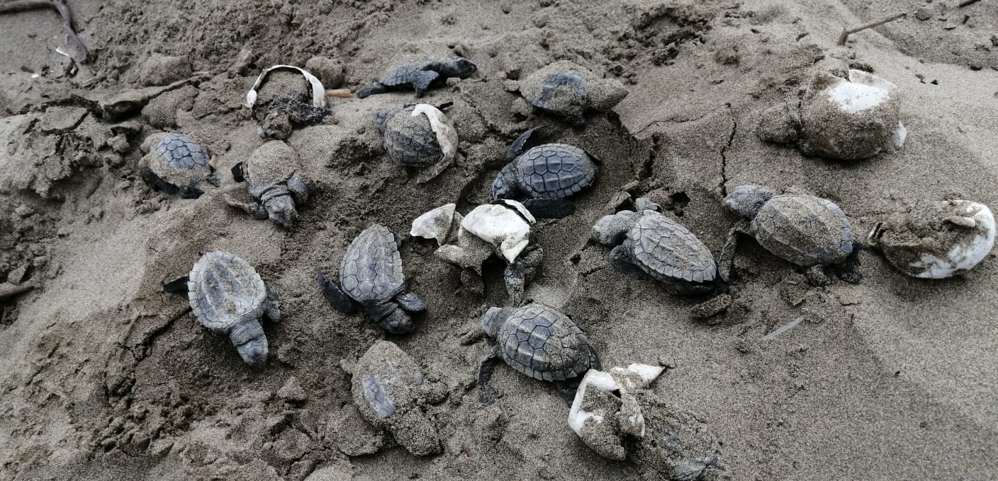 Coatzacoalcos, Ver. 4 de junio de 2021.-17 tortugas recién salidas del huevo, fueron encontradas muertas en las playas de Coatzacoalcos, hasta el momento se desconocen si fueron por causas naturales.