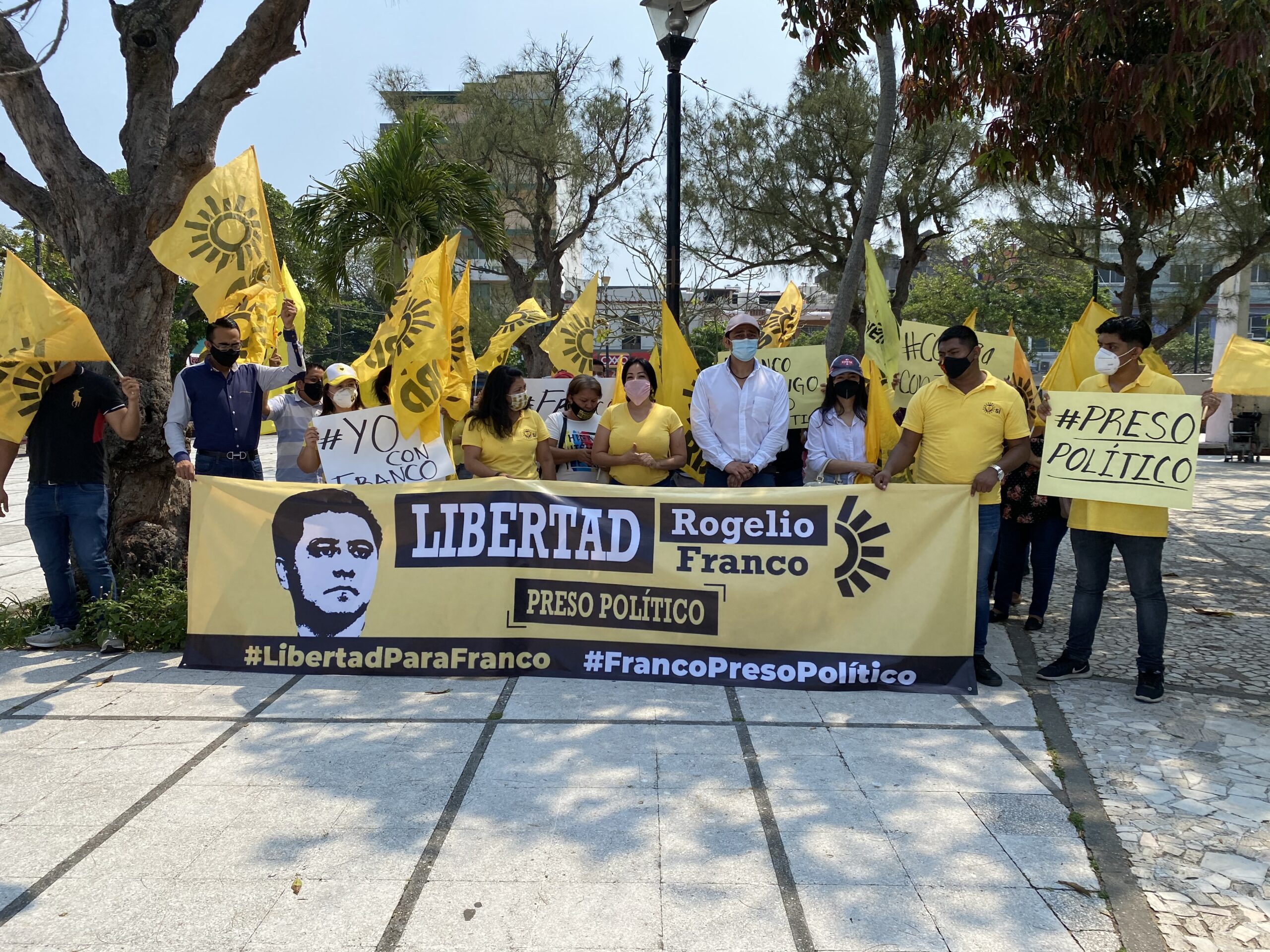 Militantes del PRD en Coatzacoalcos piden la liberación de Rogelio Franco Castán