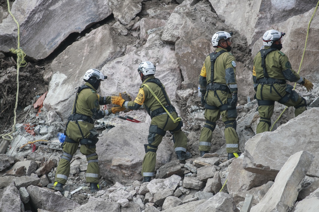 Elementos de la Guardia Nacional (GN) colaboran con autoridades de los tres órdenes de gobierno para auxiliar a la población afectada por el deslave en el cerro de Chiquihuite, en la colonia Lázaro Cárdenas, en Tlalnepantla, Estado de México.