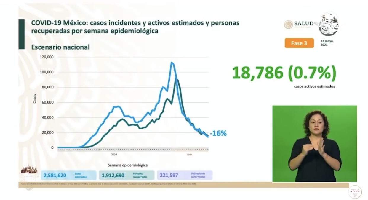 El informe de Salud recordó que el semáforo epidemiológico para las próximas dos semanas sitúa a 16 de los 32 estados de México en color verde (riesgo bajo), 15 amarillo (riesgo medio) y uno en naranja (riesgo alto).