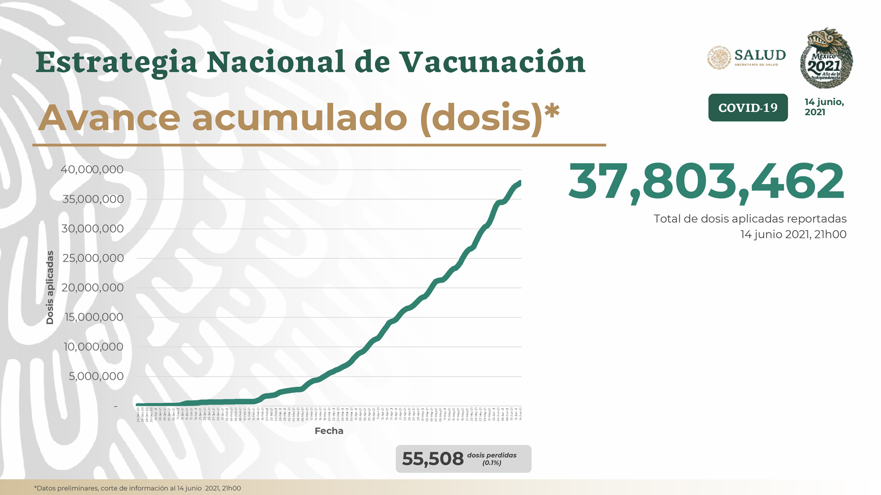 Informó además, que desde el inicio de la estrategia nacional de vacunación se han aplicado en total 37 millones 803 mil 462 dosis.