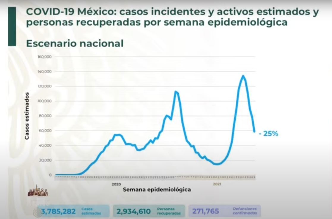 Ciudad de México. Por octava semana consecutiva se observa en México la reducción de los impactos de la pandemia de Covid-19, expuso hoy el subsecretario de Salud, Hugo López Gatell.