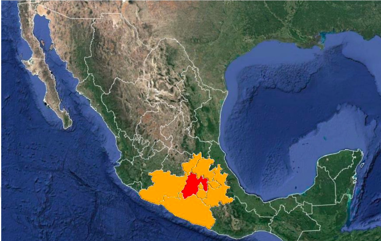 Por tal motivo, la CNPC emitió un alertamiento dirigido a las Unidades de Protección Civil de Estado de México, Ciudad de México, Hidalgo, Querétaro, Michoacán, Guerrero, Morelos, Puebla y Tlaxcala.