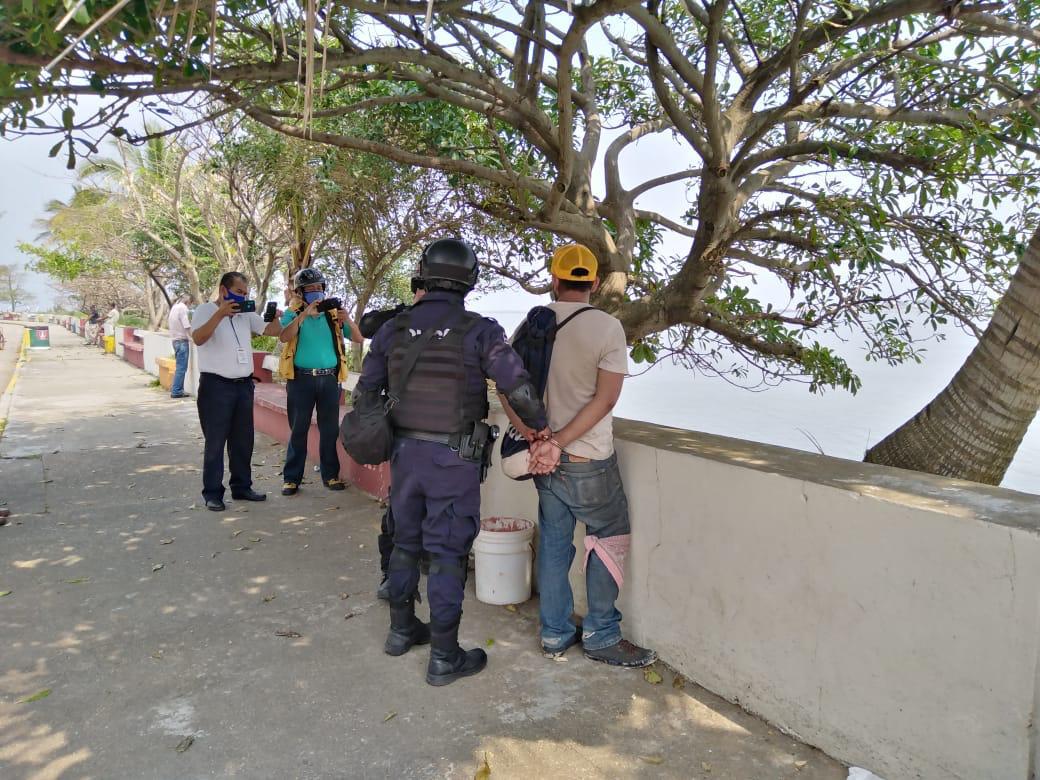 En la zona se desplegó un fuerte operativo, trasladando al implicado a los separos del ex penal de Palma Sola, donde se le fincarán responsabilidades.