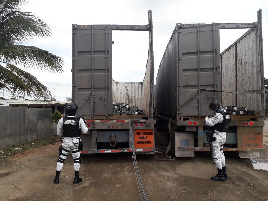 Guardia Nacional detiene a ocho personas y recupera dos tractocamiones cargados con varilla