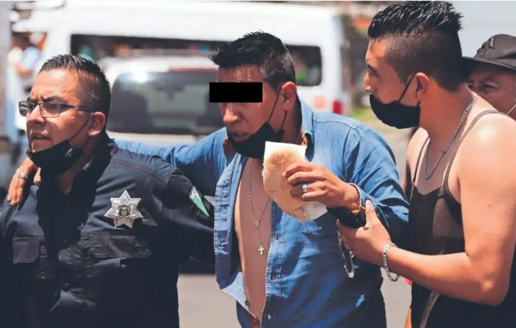La imagen corresponde al momento en que fue asistido el conductor de un camión urbano, identificado como José Arturo “N”, de 26 años, luego de arrollar y reventar con las llantas de la unidad de transporte la cabeza de un ciclista, de aproximadamente 50 años, quien pedaleaba en sentido contrario sobre la Vía Morelos en Ecatepec, Estado de México.