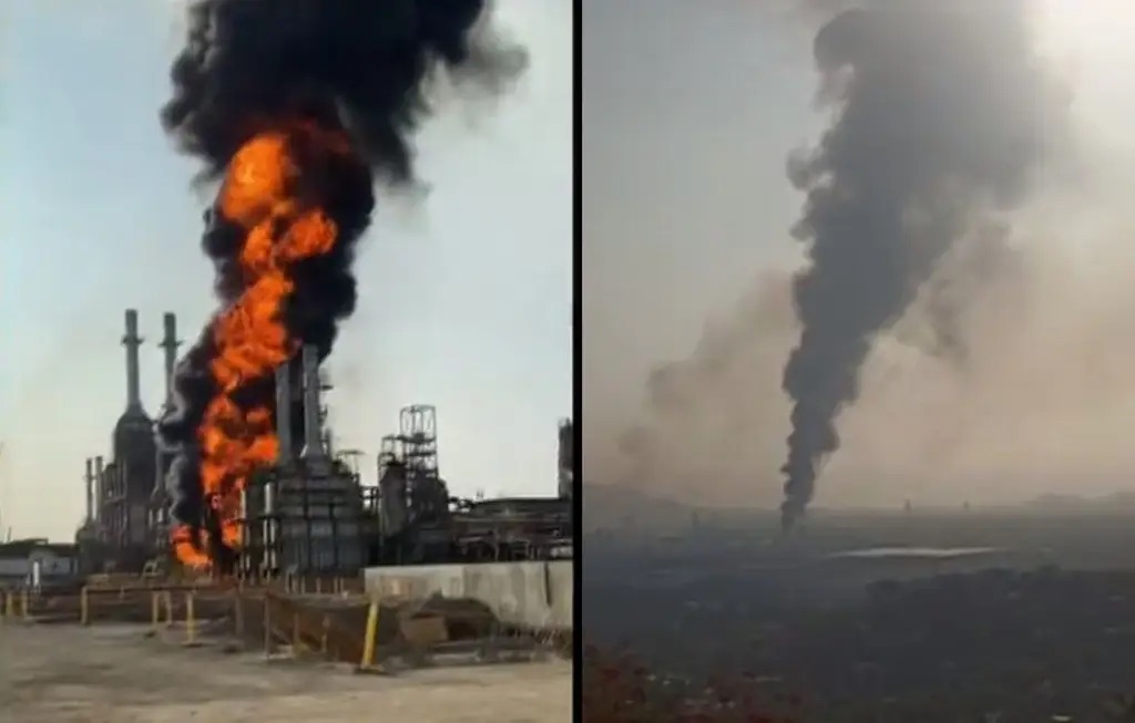 Fuerte incendio en refinería Antonio Dovalí Jaime, en Salina Cruz, Oaxaca