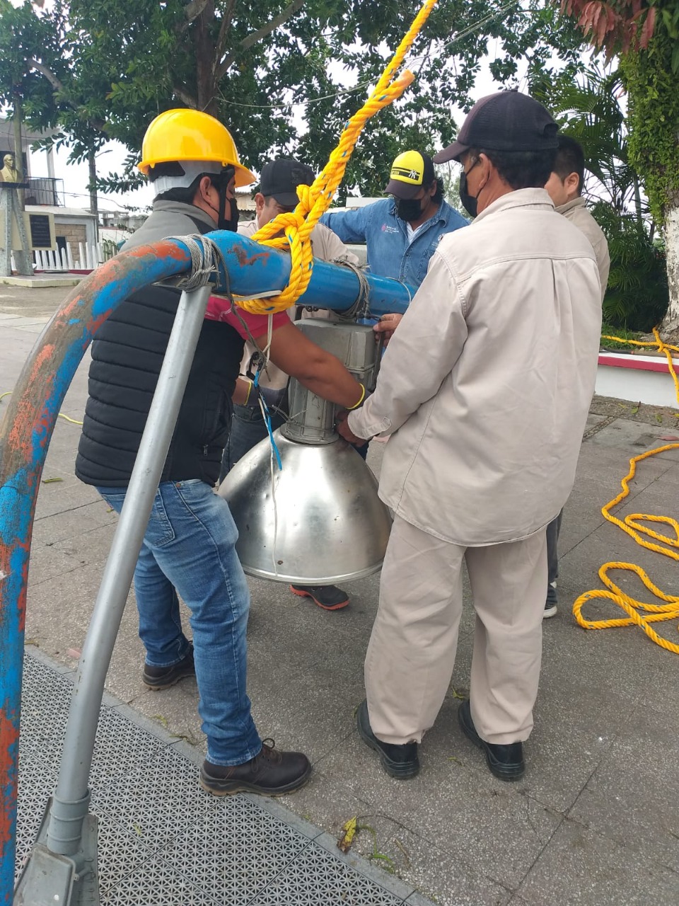Para beneficio de las familias que acuden a este sitio de esparcimiento, la cuadrilla de trabajadores llevaron a cabo tareas de restauración de la iluminación, incluso hicieron cableado nuevo.